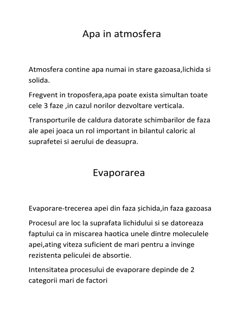 vizitati articolul complet aici : https://ro.scribd.com/presentation/370167920/0-Apa-Circuitul-Apei-in-Natura Astfel, presiunea aerului va fi data de suma dintre presiunile partiale ale componentilor lui, n2 si o2 si presiunea partiala a vaporilor de apa. Starea gazoaza a apei se caracaterizeaza prin faptul ca se rup toate legaturile de hidrogen, deci moleculele devin libere si izolate. Vaporii de apă reprezintă apa în stare gazoasă.